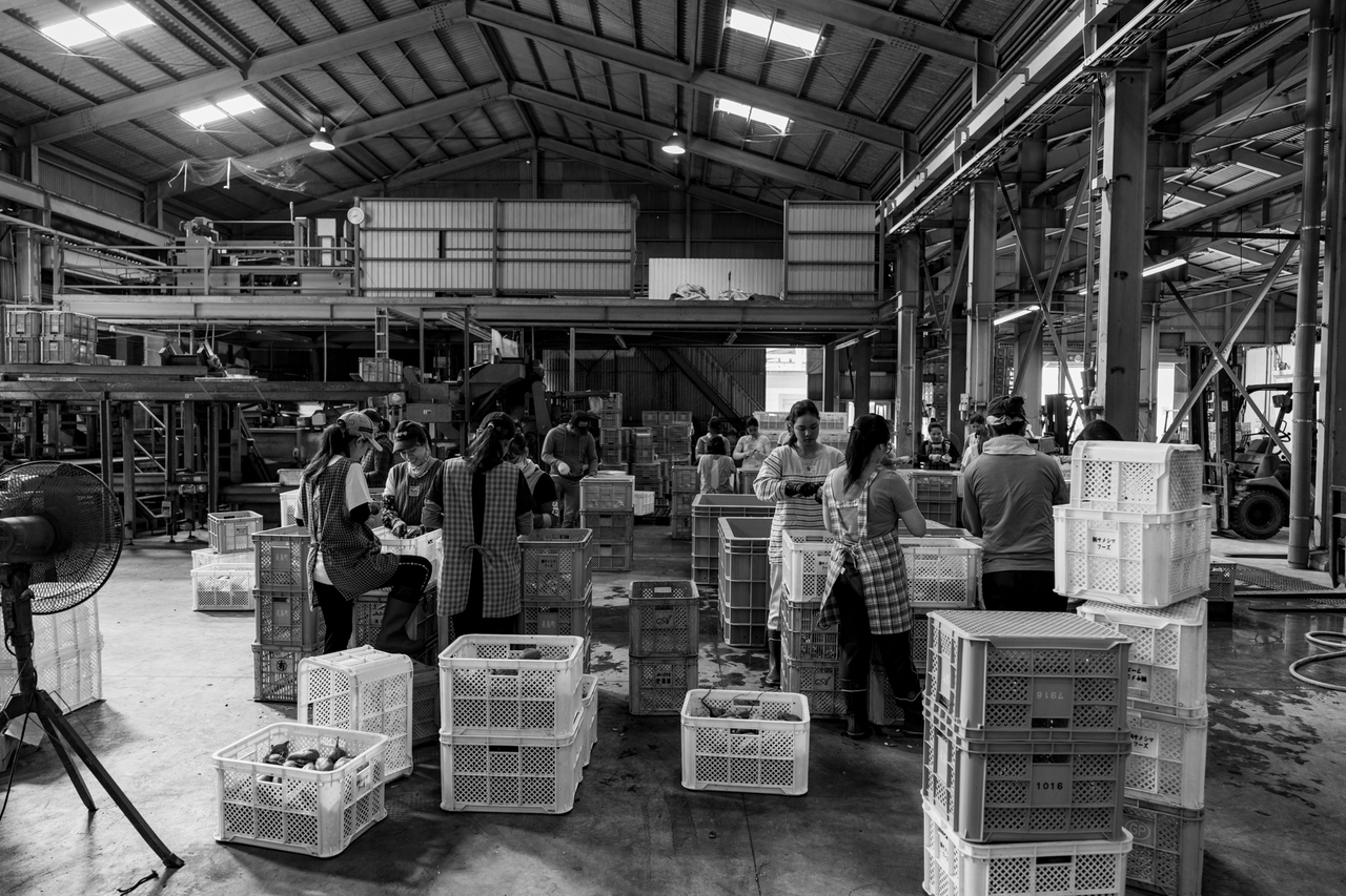 サツマイモ出荷箱詰め